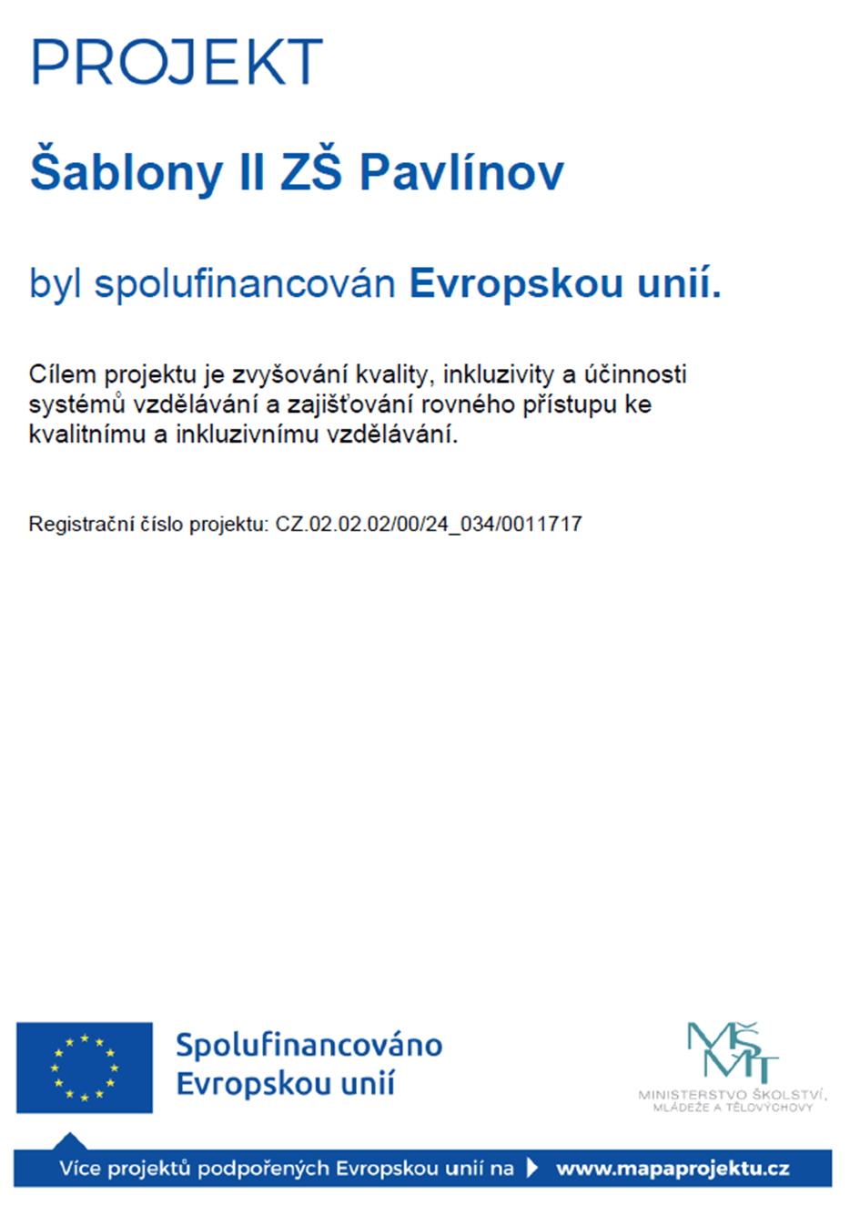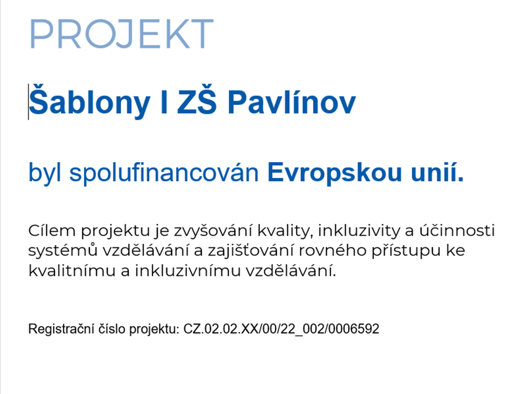 Název projektu dle MS2021+: Šablony II ZŠ Pavlínov